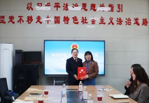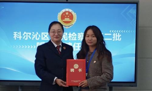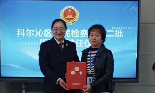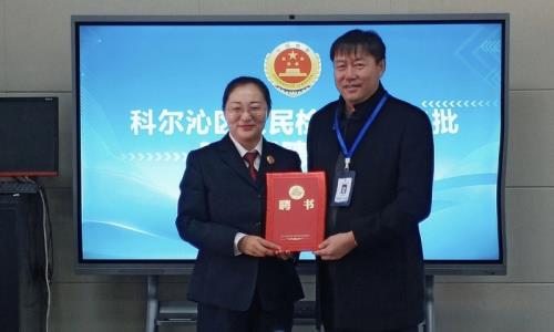 会后,举行了科尔沁区人民检察院听证员聘任仪式。王金莲副检察长代表科尔沁区检察院向唐孝辉、付淑娥、李文杰、白军胜、赵建平五位教师颁发了听证员聘书。