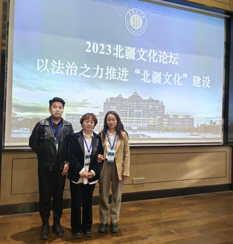 2023年11月25日,“2023北疆文化论坛”在呼和浩特市顺利召开,本次论坛由内蒙古大学承办,我院副院长付淑娥教授、刑法学教研室主任李文杰教授以及2021级民族法学研究生安伟达应邀参加会议。