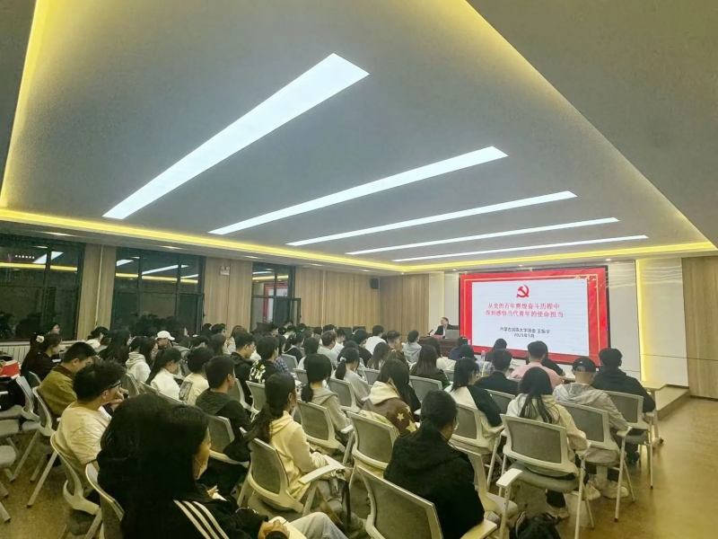 王振宇以《从党的百年辉煌奋斗历程中 深刻感悟当代青年的使命担当》为题,讲述了中国共产党百年辉煌奋斗历程、百年历程中党的历史主动精神,带领全体学员重温了习近平总书记对当代青年的谆谆教诲。他鼓励全体学员要勇于担当、敢于作为,用实际行动书写属于自己的青春篇章。同时,他希望同学们能够从党的百年奋斗历史经验中汲取智慧和力量,将其内化于心、外化于行,不断提升自身的思想政治素质和综合能力,为同学树立榜样,为社会贡献力量。