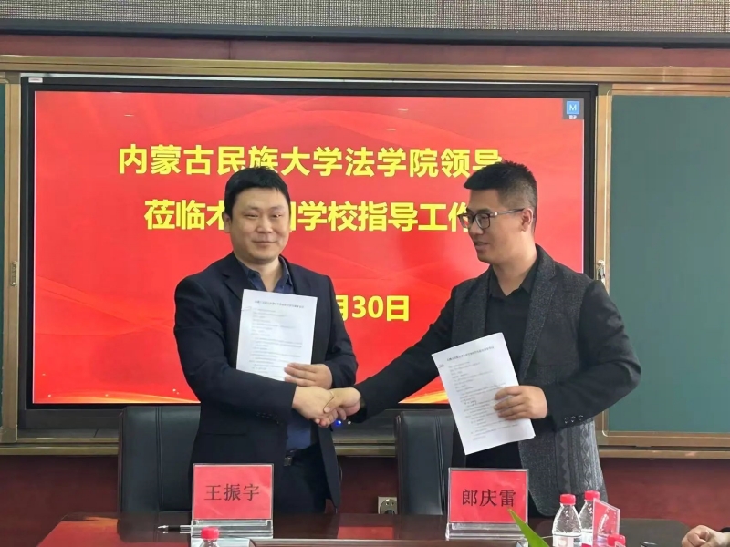 随后,法学院学工办副主任王振宇与木里图学校法治副校长朗庆雷共同签署了《内蒙民族大学法学院青少年普法阳光驿站服务协议》,清河向木里图学校授牌。