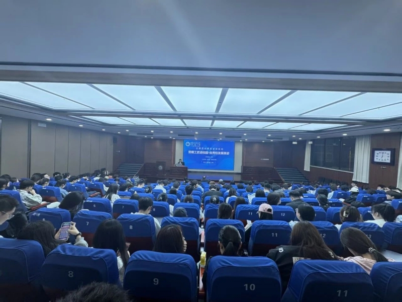 伏莹,硕士研究生学历,现任内蒙古阿尔善药业有限公司总经理、总工程师,中国药文化研究会蒙药分会秘书长、中国民族医药协会蒙医药专业委员会副会长、通辽市工会第五次、第六次代表大会代表。深耕药品研发生产20余年,获得各类专利20余项、发表论文十余篇,增荣获全国劳动模范、全国五一劳动奖章、自治区五一劳动奖章、自治区优秀共产党、新时代“科尔沁”英才等多项荣誉。她结合自身经历,讲述了从专业学习到攻克技术难关的拼搏故事,展现了劳动创造价值的实践路径,鼓励同学们珍惜校园时光,培养创新精神与实践能力。她的宣讲生动有趣,鞭辟入里,赢得了现场观众阵阵热烈的掌声。大家纷纷表示,将以劳模为榜样,努力提升综合素质。