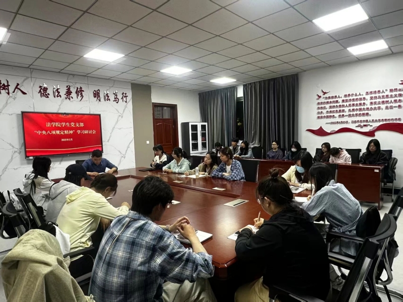 5月23日晚,法学院学生党支部在育人楼306会议室组织召开深入贯彻中央八项规定精神学习教育研讨会。支部书记王振宇主持会议,支部全体党员、发展对象、积极分子参加会议。