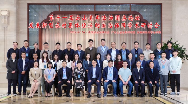 4月20日,由中国法学会民法学研究会、广东外语外贸大学土地法制研究院主办,安徽财经大学法学院承办,安徽大友昱达律师事务所协办的第十一届云山青年法治圆桌论坛暨“发展新型农村集体经济的法治保障”学术研讨会在安徽蚌埠举行。来自中国政法大学、中国农业大学、中南财经政法大学、吉林大学、西北政法大学、广东外语外贸大学、南开大学、苏州大学、南京师范大学、天津大学、郑州大学、内蒙古大学、河南农业大学、燕山大学、内蒙古民族大学、西北民族大学、山东政法学院、肇庆学院、江西飞行学院、安徽农业大学、安徽财经大学、安徽大友昱达律师事务所等20多家单位近60名专家学者参加论坛。广东外语外贸大学土地法制研究院名誉院长、云山(法学)工作室首席专家陈小君教授,广东外语外贸大学土地法制研究院院长高飞教授参加开幕式并致辞。会议开幕式由安徽财经大学法学院院长高海教授主持。
