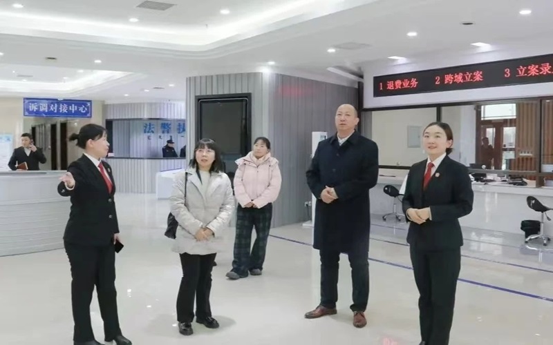 清河书记一行先后参观安全检查室、诉讼服务中心、诉调对接中心、执行服务中心等场所,详细了解审判执行工作及管理情况。
