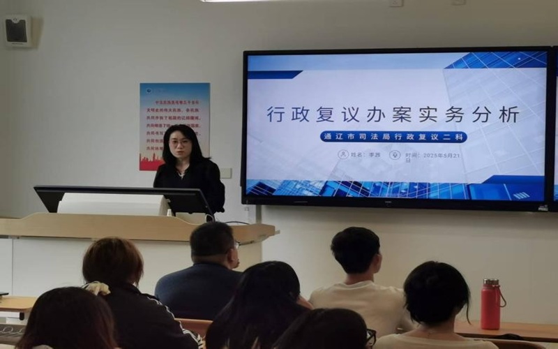 为深化法学理论与司法实务的融合,提升法学人才培养质量,5月21日,内蒙古民族大学法学院特邀通辽市司法局行政复议二科工作人员、公职律师李茜与本院专任教师王新时为2024级本科生开展“理论与实务专家同堂授课”活动。