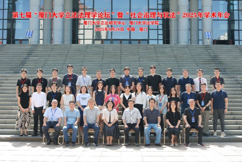 2025年8月28-29日,由厦门大学立法研究中心、福建省人大常委会地方立法评估与咨询服务基地(厦门大学)、福建省人大常委会备案审查服务基地(厦门大学)、国家与社会治理法治化研究中心、厦门大学社会治理与软法研究中心主办,厦门大学法学院承办的第七届“厦门大学立法法理学论坛”暨“社会治理与软法”2025年学术年会在厦门成功举行。我院刘国利、白军胜、顾世华、王新时等4名教师参会。