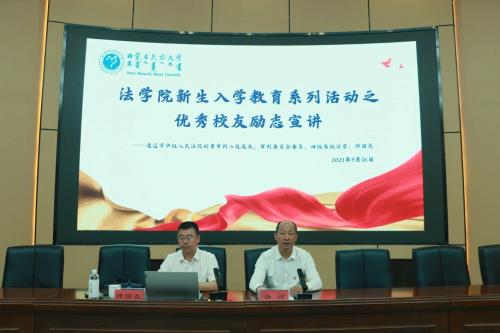 为了让23级新生们更好的了解大学生活以及更好的认识法学专业,2023年9月16日法学院在霍林河校区明理楼报告厅开展法学生新生入学教育系列活动之优秀校友励志宣讲。