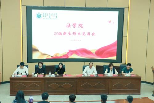 云淡天地阔,金秋硕果丰。9月16日上午9时,法学院在明理楼报告厅召开本科新生师生见面会。学院党委书记清河、院长唐孝辉、副院长付淑娥,实验室主任史秀娟、综合办主任张春雨、学工办副主任王振宇及2023级本科新生参加会议。会议由王振宇主持。