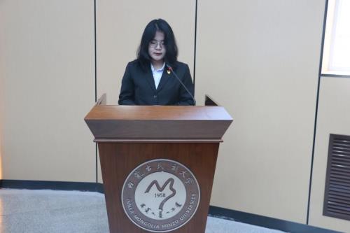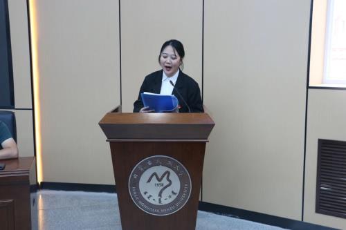 2020级法学一班顾宜珩同学代表在校生发言。她分享了自己三年来在法学院的求学历程和切身感受,为新生同学们提出学习生活方面的建议。