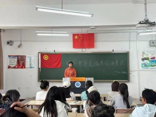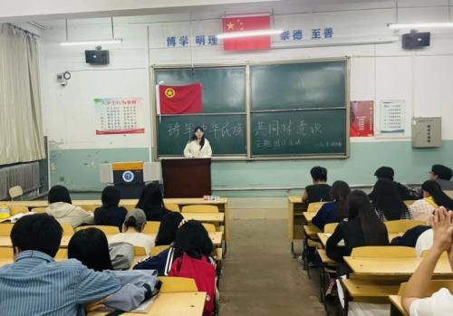 各班团支书在召开团日活动前于权威网站搜集信息,为本次团日活动顺利开展做了充足的准备。团支书组织同学们齐唱国歌,宣告本次团日活动开始,在开展过程中,团支书们为同学们宣讲习近平总书记关于民族工作以及铸牢中华民族共同体意识的重要讲话,并且团支书为同学们精心准备了抢答题环节以及诵读环节,同学们通过与团支书的互动,更加深刻的理解铸牢中华民族共同体意识的重要性。