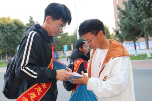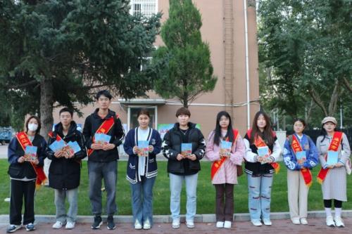 为了加强法治文化建设,培养法治观念,普及法律知识,提高法律意识和素养。10月19日下午,内蒙古民族大学基层立法点组织内蒙古民族大学法学院北疆享法公益法律服务团开展“尊重国旗 爱护国旗 共同遵守《国旗法》”普法宣传册发放活动。