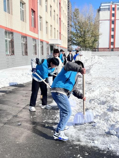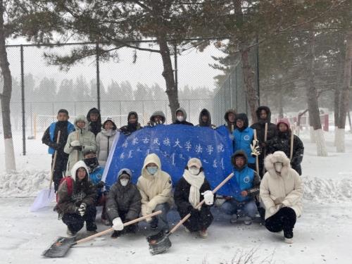 11月6日-7日,法学院在霍林河校区内外开展清雪志愿者服务活动。