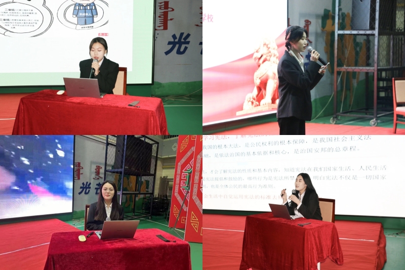 为深入学习贯彻习近平法治思想,弘扬宪法精神,培养广大青少年尊崇宪法、学习宪法、遵守宪法、维护宪法、运用宪法的法治意识,12月4日下午,法学院走进通辽市蒙古族学校开展“大力弘扬宪法精神 普法助力法治校园”普法活动。
