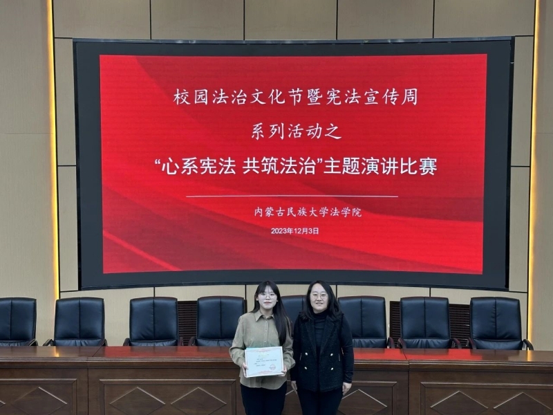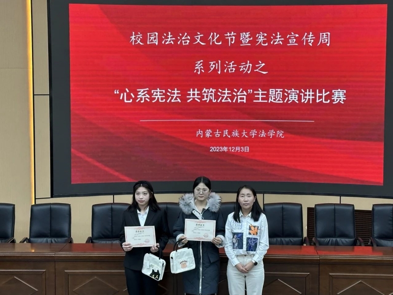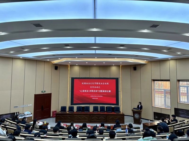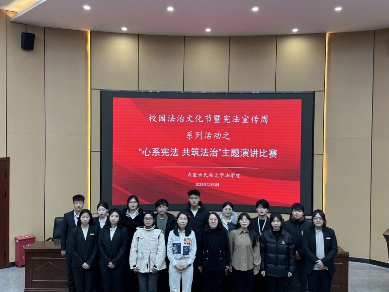 为深入贯彻落实习近平总书记关于宪法学习宣传教育的重要指示精神,加强宪法宣传学习教育,法学院以国家宪法日为契机,大力弘扬宪法精神,切实增强广大师生宪法意识,12月3日下午,在明理楼报告厅举办校园法治文化节暨宪法宣传周系列活动之“心系宪法 共筑法治”主题演讲比赛。法学院党委副书记萨茹拉,团总支副书记黄格尔出席本次演讲比赛并担任评委。