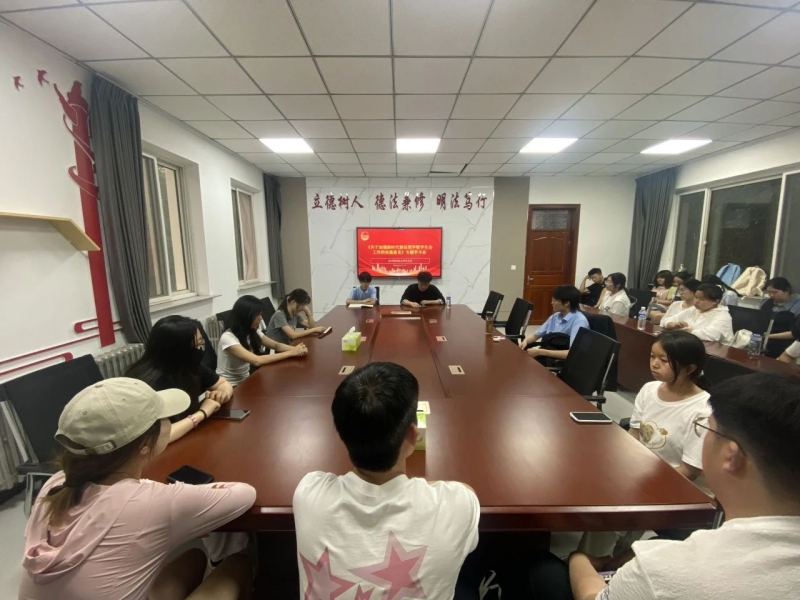 为深入学习贯彻习近平总书记在同团中央新一届领导班子集体谈话时的重要讲话精神,进一步增强学联学生会组织和工作的政治性、先进性、群众性,进一步推动学联学生会工作高质量发展。法学院于6月15日在育人楼306开展《关于加强新时代新征程学联学生会工作的实施意见》专题学习会。法学院学生会全体成员参与,会议由学生会执行主席孟槿煦主持。