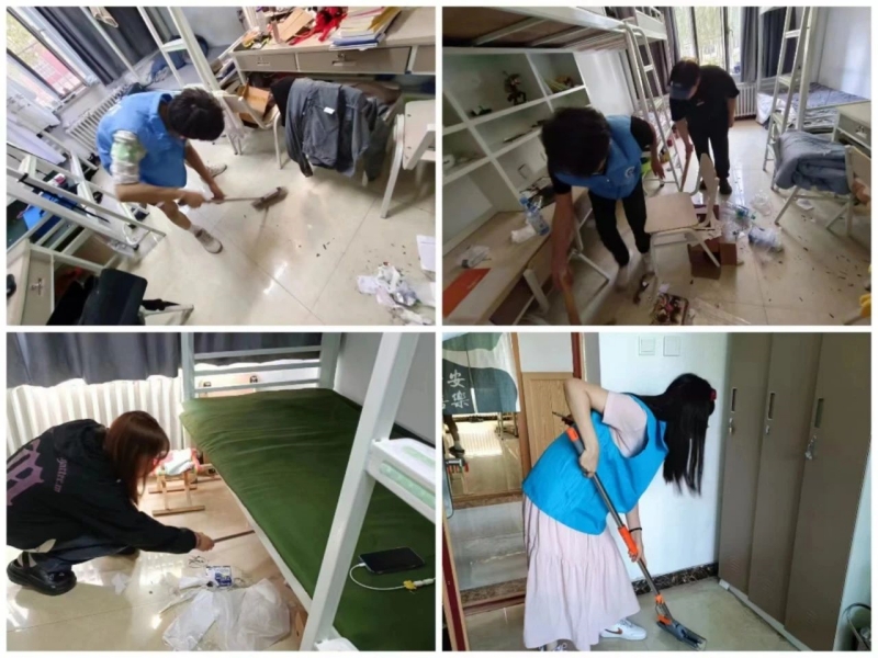 活动当天,志愿者们早早地来到了毕业生宿舍集合,手持清洁工具,精神饱满地投入到打扫工作中。他们分工明确,有的负责扫地、拖地,有的负责擦窗户、整理床铺,还有的负责清理废弃物品。