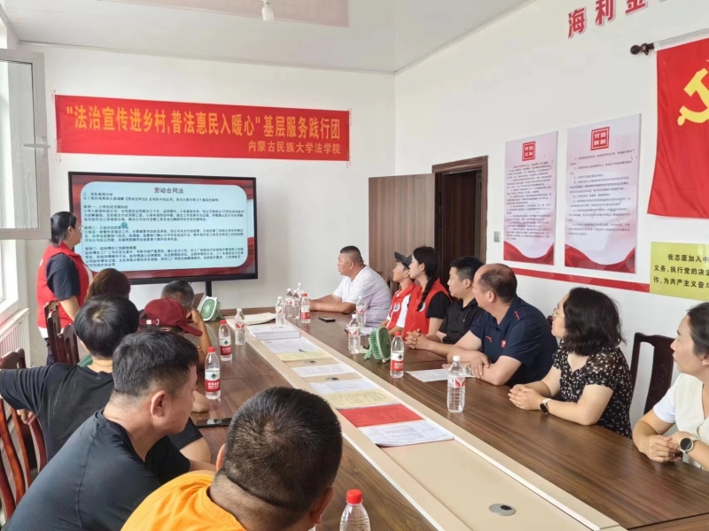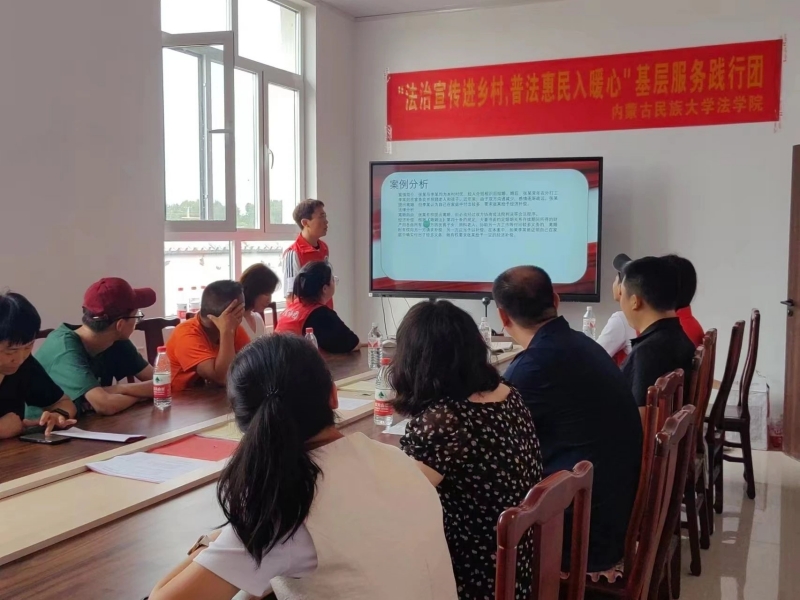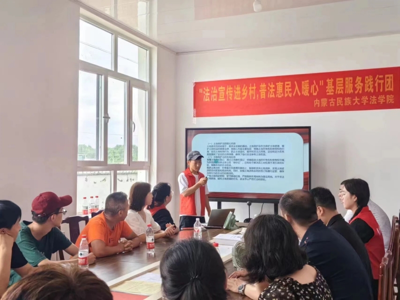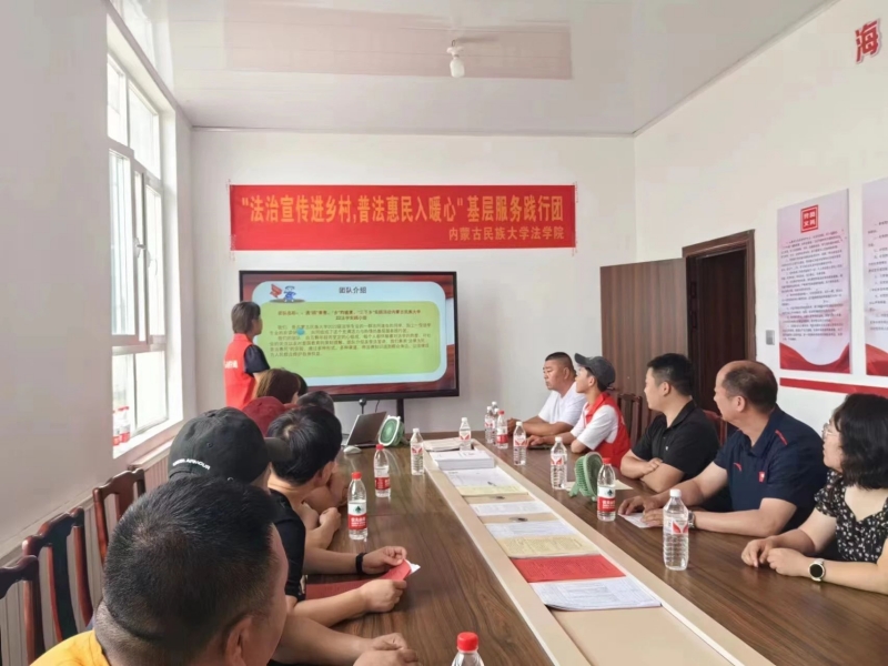 为大力弘扬社会主义法治精神,传播法律知识。7月29日,法学院党委书记清河带领北疆享法法律服务实践团前往内蒙古兴安盟科尔沁右翼中旗代钦塔拉苏木海利金茫哈乡开展“盛夏访红城,忆峥嵘岁月;筑法律之堤,促乡村振兴”为主题暑期“三下乡”社会实践活动。
