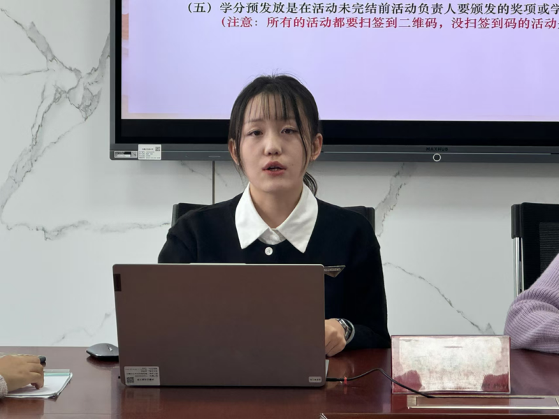 包秀荣还介绍了智慧团建平台的使用及其对团支部书记开展工作的辅助作用,详细介绍了智慧团建平台网站上各大模块的内容与功能,帮助各位团支部书记掌握了如何利用该系统进行班级团员管理工作。此外,她还针对各班团费缴纳问题提出了切实可行的解决方案。