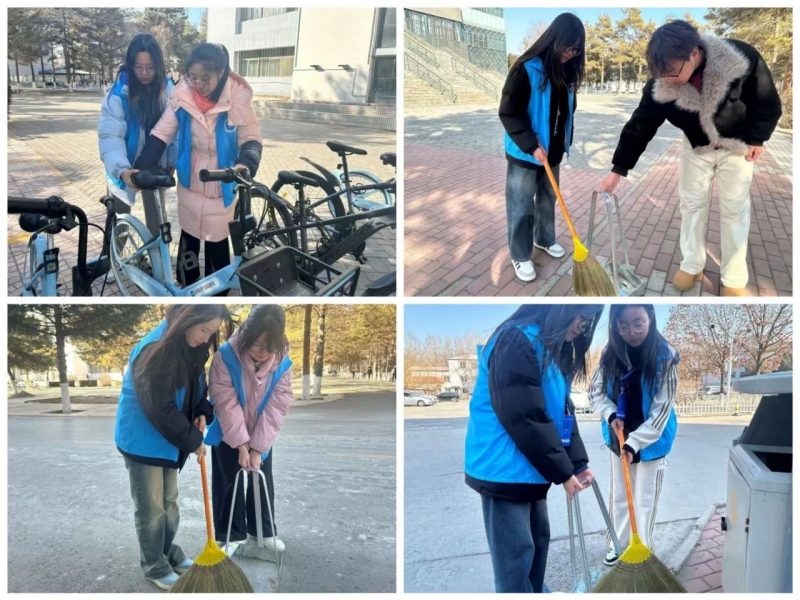 为大力弘扬新时代雷锋精神,深刻把握雷锋精神的时代内涵和实践要求,3月6日下午,我院组织团员青年在西拉木伦校区开展了“勇当志愿先锋 彰显青春担当”志愿服务活动。志愿者们积极开展卫生清理、环境清洁工作,大家热情高涨,充分发扬雷锋精神,不怕脏、不怕累,协助营造整洁美好的校园环境。此外,学院还组织开展了摆放单车志愿服务活动。志愿者们分区域在校园内整理摆放单车,分工协作,互相配合,将校园内停放的单车摆放整齐,共同营造安全整洁的校园环境。