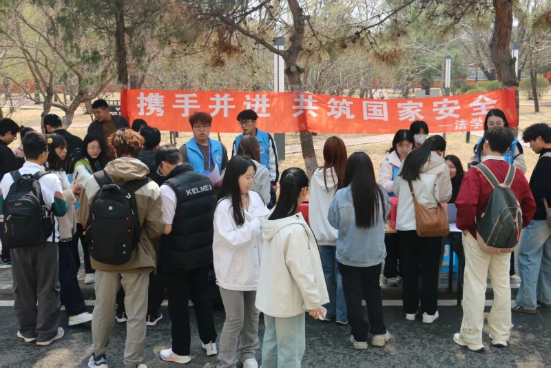 2025年4月15日是第十个全民国家安全教育日,为深入贯彻总体国家安全观,增强学生国家安全意识和素养,法学院于4月15日在霍林河校区桃李园餐厅前组织国家安全素养知识答题活动,共计400余名同学热情投身其中。